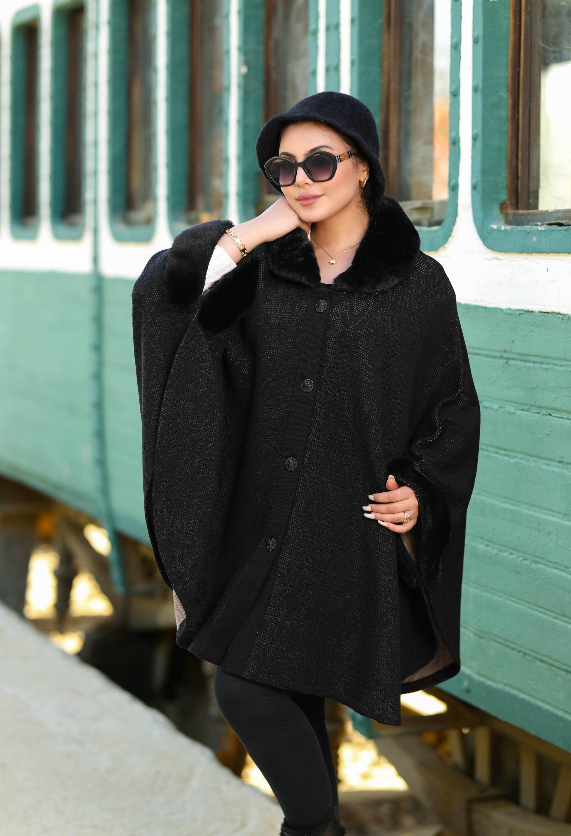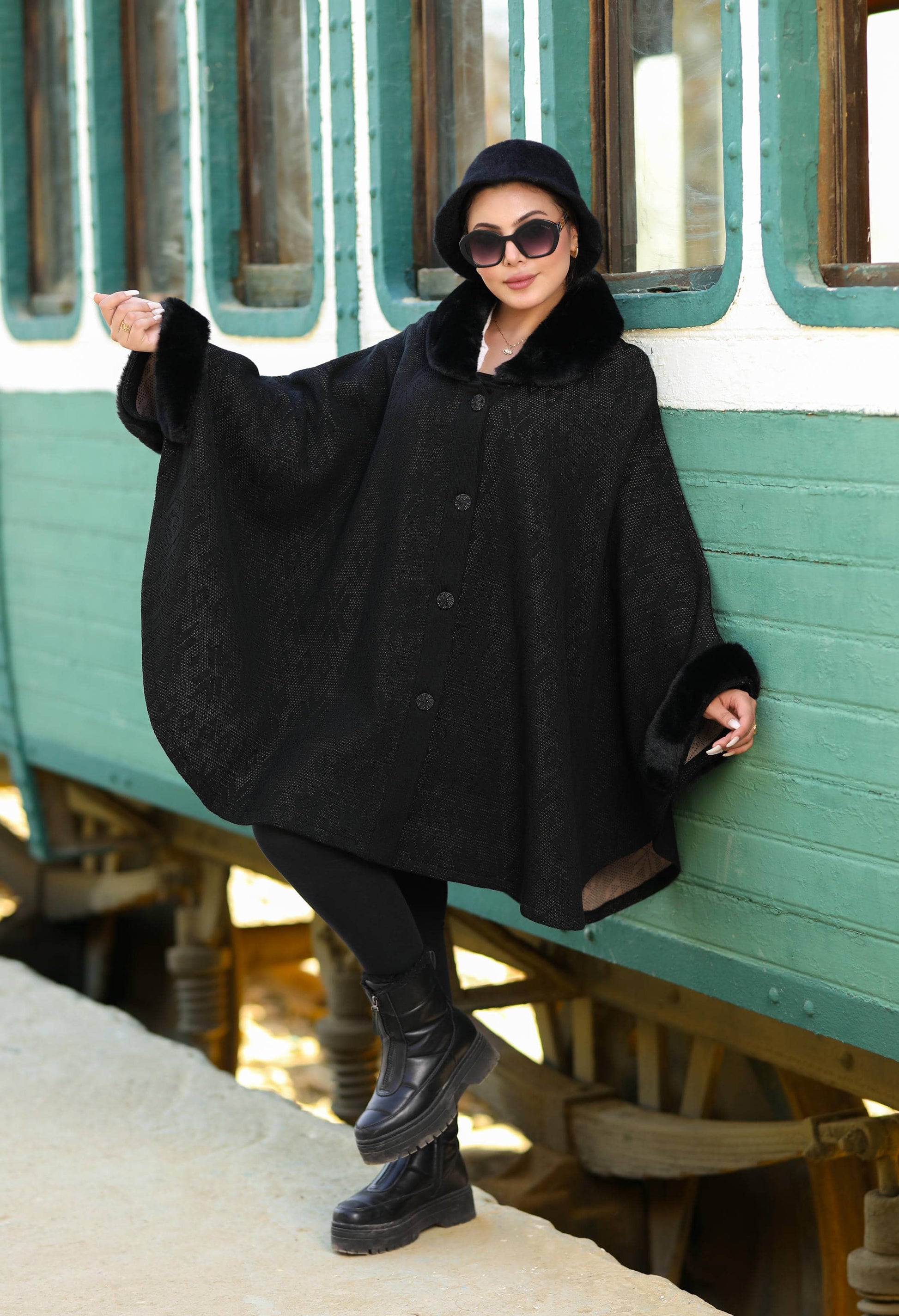 • الخامة: تريكو مضغوط × فرو مع أزرار