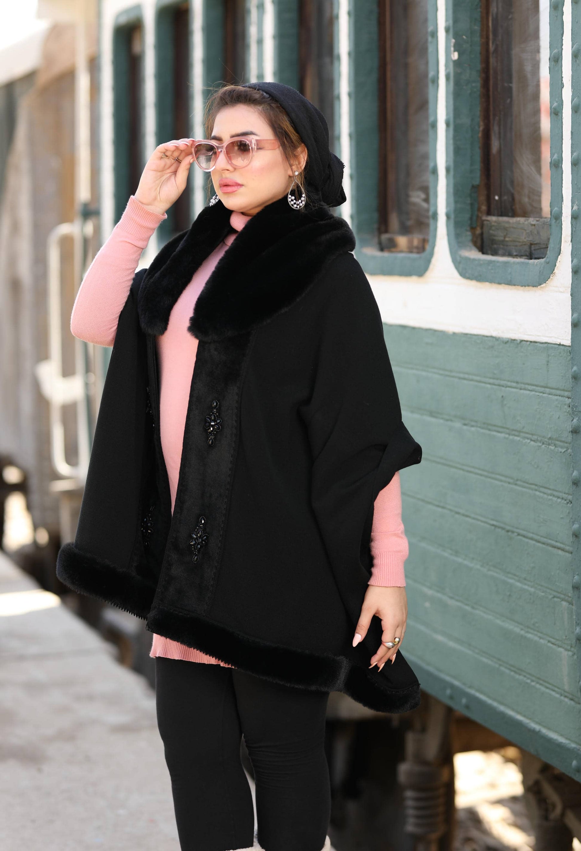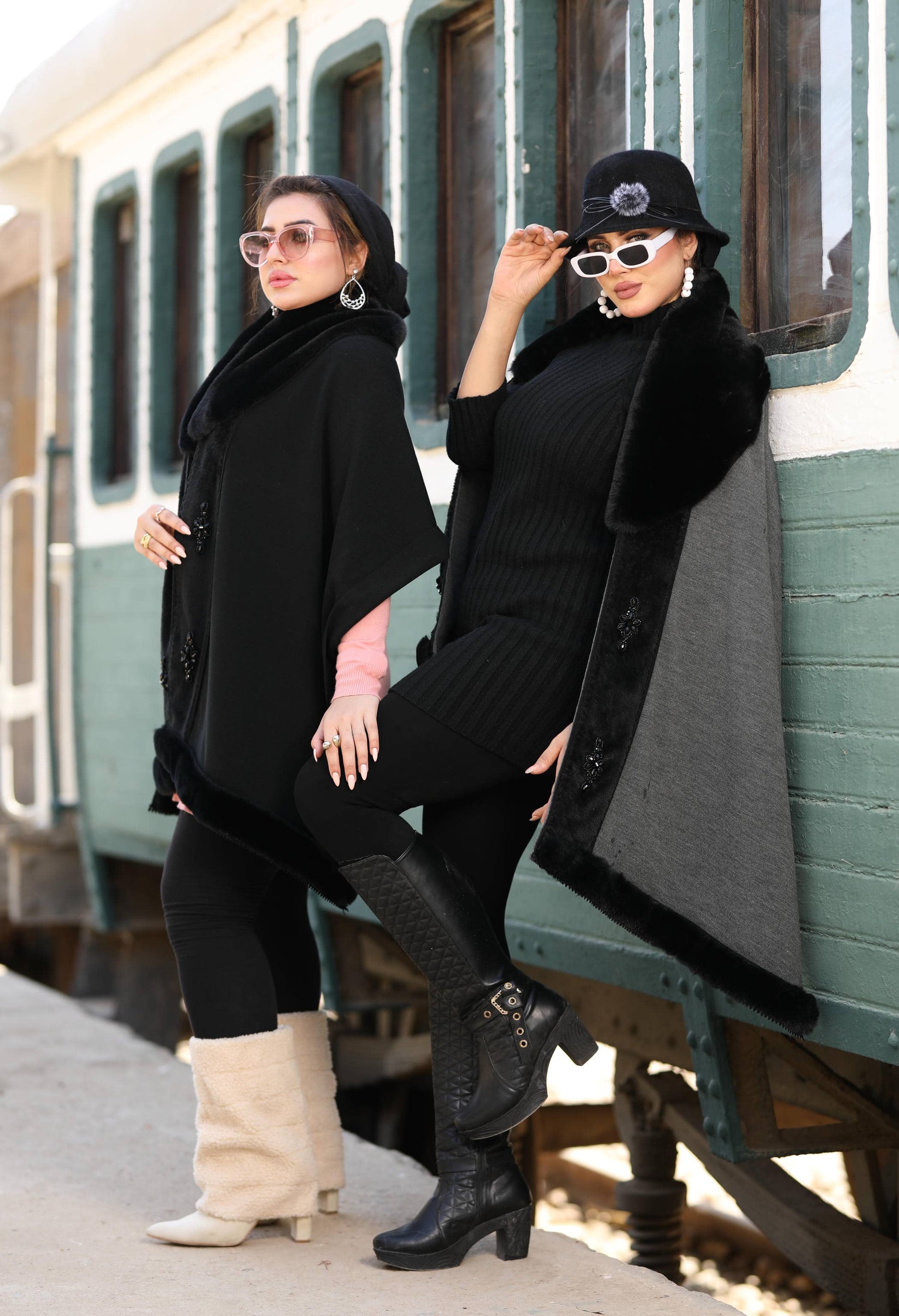 Knitted Shawl with Faux Fur & Accessory Strip – 5008